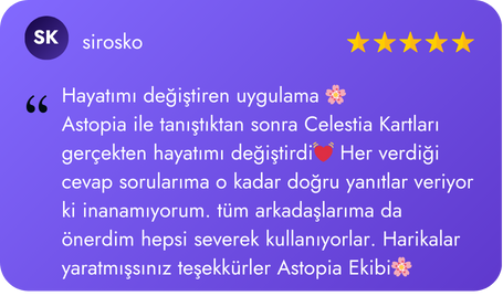 Astopia ile 2025’in her anında, yıldızların rehberliğini hissedeceksin. Şimdi Astopia’yı indir ve yıldızlarla dolu bu yolculuğa adım at!